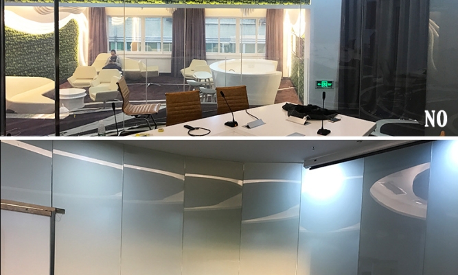 The dimming film and film in the middle of electronic atomization glass have sound damping effect, which can effectively block noise.