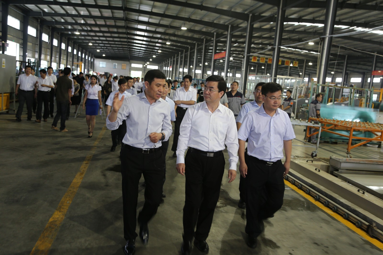 2015年7月20日,全市工業(yè)發(fā)展重點(diǎn)項(xiàng)目觀摩現(xiàn)場(chǎng)會(huì)召開(kāi)。會(huì)議采取“家家到”的形式現(xiàn)場(chǎng)觀摩上半年工業(yè)重點(diǎn)項(xiàng)目推進(jìn)情況。楊省世、趙曉江等市四套班子領(lǐng)導(dǎo)以及各縣區(qū)、市有關(guān)部門(mén)負(fù)責(zé)人一站來(lái)到我縣,現(xiàn)場(chǎng)觀摩景泰鋼化玻璃Low-E中空玻璃生產(chǎn)線,在景泰玻璃公司,楊省世、趙曉江等與會(huì)人員先后實(shí)地觀摩該企業(yè)鋼化玻璃Low-E中空玻璃生產(chǎn)線項(xiàng)目。在車(chē)間內(nèi),楊省世仔細(xì)詢問(wèn)企業(yè)產(chǎn)品種類(lèi)、市場(chǎng)銷(xiāo)售等情況。